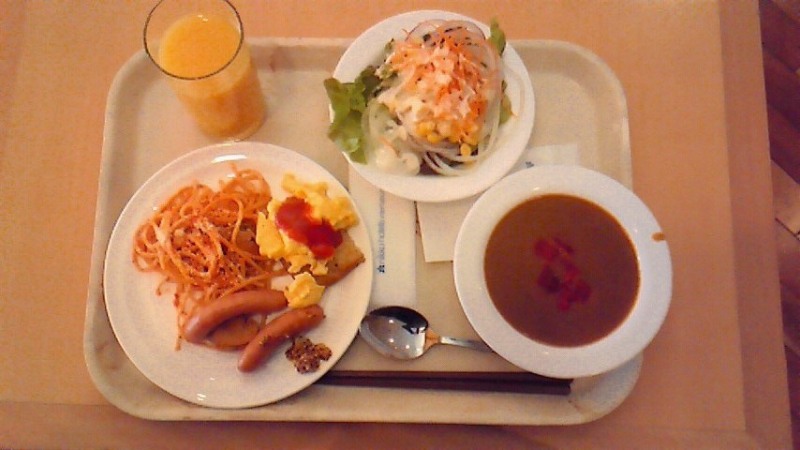 パスタにはタバスコが赤と緑の2種類。ホテルのモーニングでパスタというのはいくつか見かけましたが2種類のタバスコ用意はあまり見かけませんでした。ファミレスでは珍しくないサービスですが、ホテル、とりわけ朝食バイキングではありそうでないサービスだっただけにちょっとうれしかったですね。