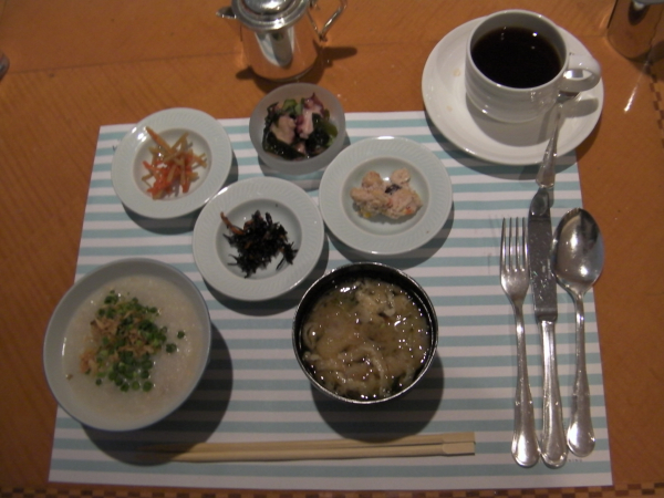 そして和食メニュー。鮭や椎茸などが入っていて日本のお粥と中華粥の中間みたいな感じでした。