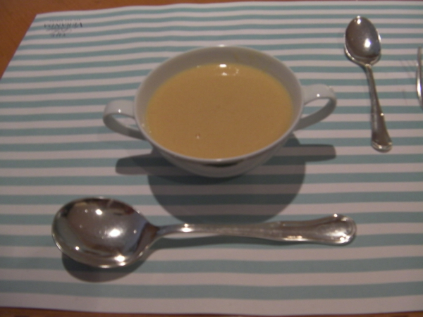 取り忘れてしまったので急遽追加。ポタージュスープです。パンを食べる際にはぜひ横に置いておきたい一品ですね。