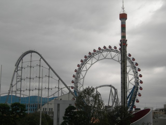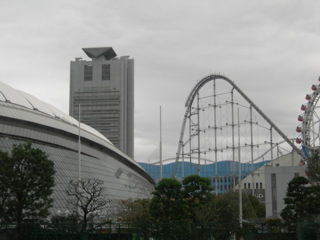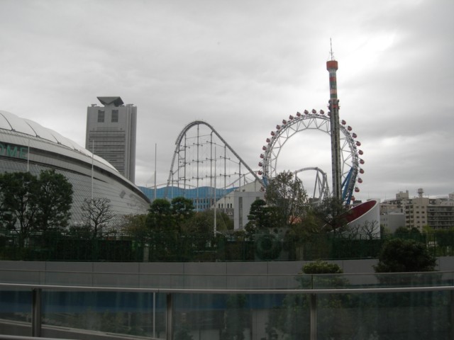 後楽園遊園地と東京ドームを望む