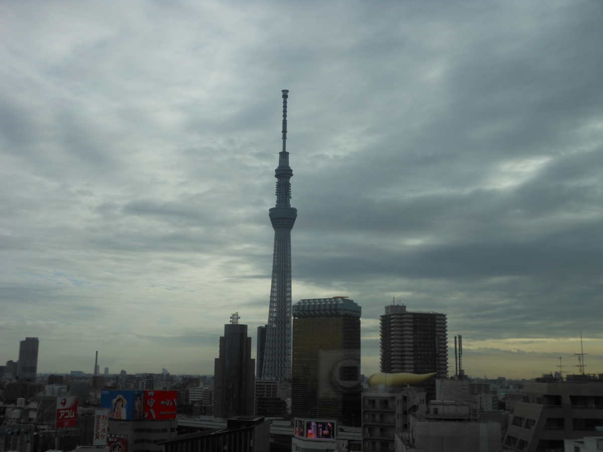 東京スカイツリー。あとビュッフェ形式なのでパンとサラダ、あとジュース他、自由にお代わりできます。