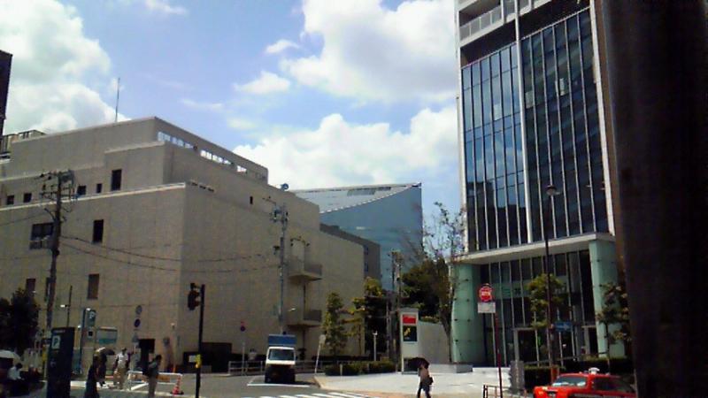JR目黒駅西口から看板の矢印に従い、最初の交差点に差し掛かります。すると中央にある、尖ったガラスのピラミッド状の建物があります。